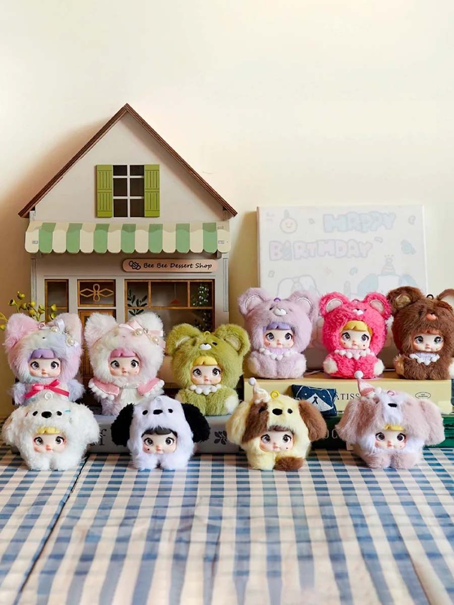 Этот mystery бокс может скрывать одного из восьми основных персонажей, каждый из которых одет в забавный костюмчик и имеет милые рисунки на личике. А также существуют редкие секретные версии, которые встречаются реже остальных.
